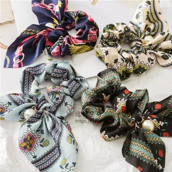 Cheap Price of Flower Exquesite Beautiful Print Seaside Gifts Hair Rope Adjustable Pearl 5 Colors Valentines Gift Elastic 1PC Unique Bowknot